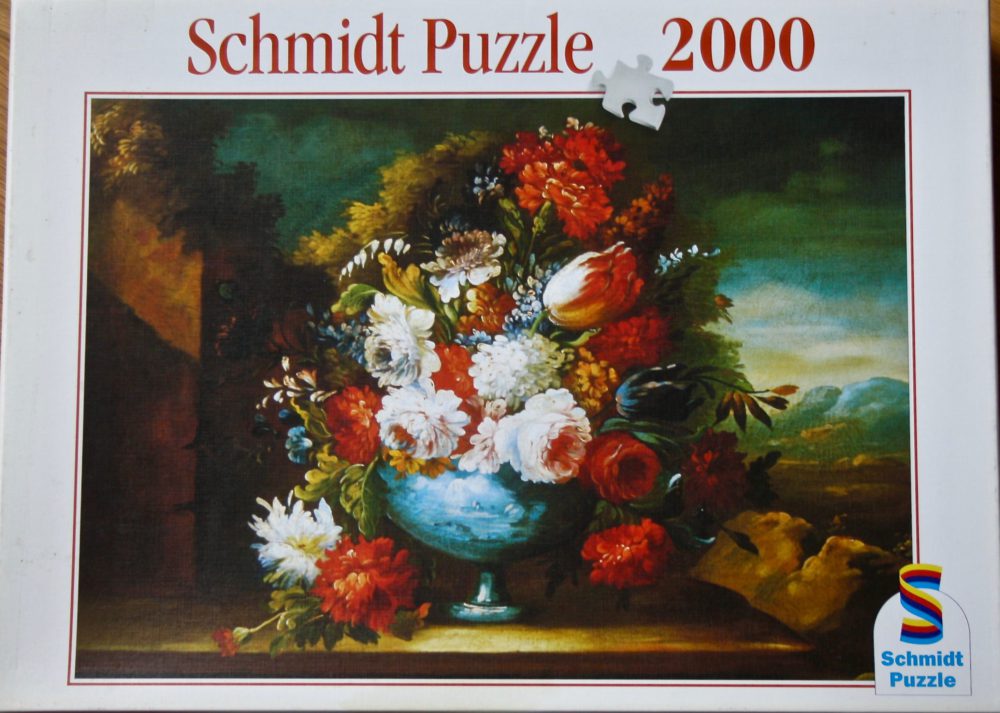 Most manufacturers have puzzles of floral compositions in their catalogues. Druon, for example, published a 1500 piece version of Still Life by Sylvie Fortin, and Nathan manufactured an excellent 3000 piece version of Still Life with Flowers and a Pineapple by Jan Frans van Dael.