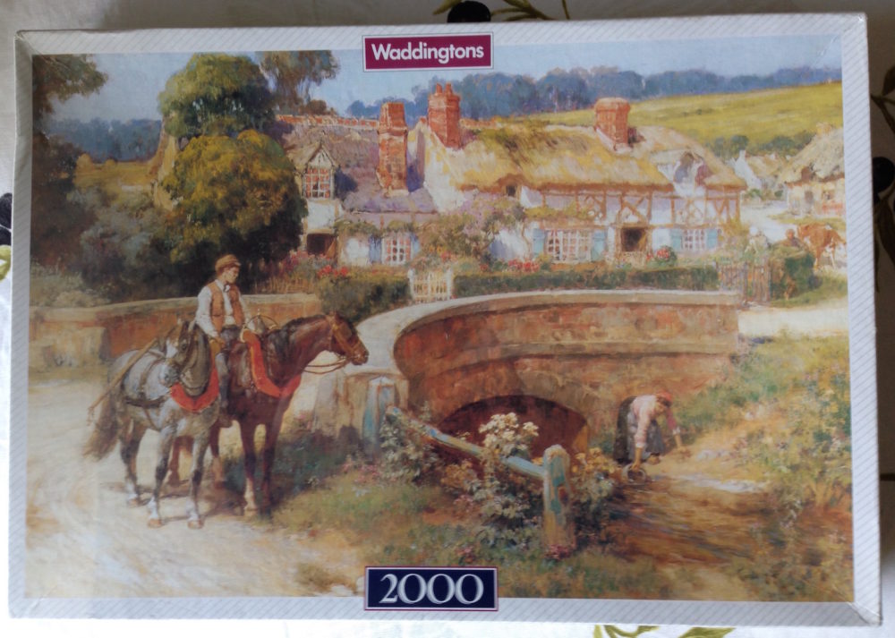 Waddingtons manufactured this beautiful puzzle in 1990, and it is now difficult to find. The title is By the Bridge, by Frederick Arthur Bridgman. It is a very nice puzzle with a lot of color.