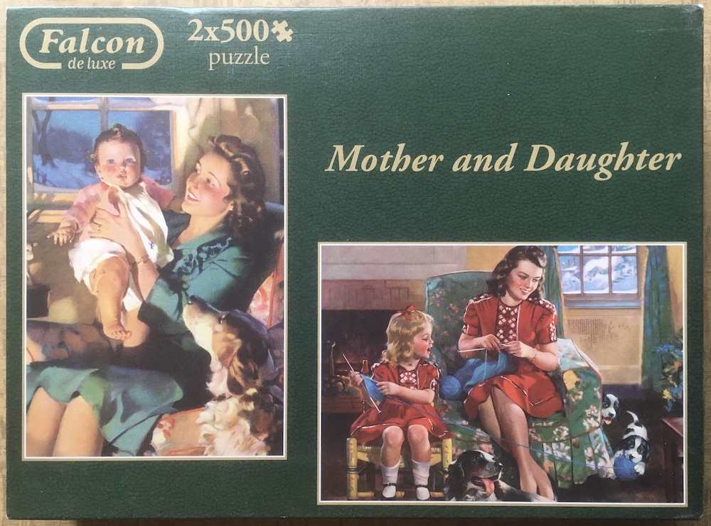 This is a nice set of 2 puzzles by Jumbo, belonging to their Nostalgia collection. The title of the set is Mother and Daughter, by Frederick Sands Brunner.