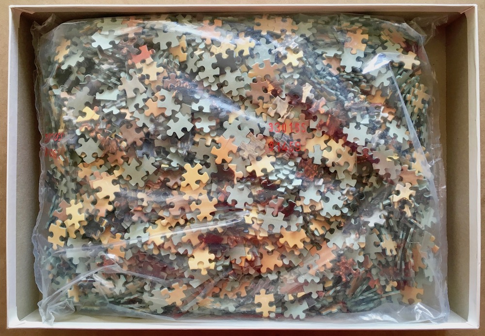 The puzzle is like NEW, with all the pieces SEALED inside the original plastic bag. The box is in excellent condition.