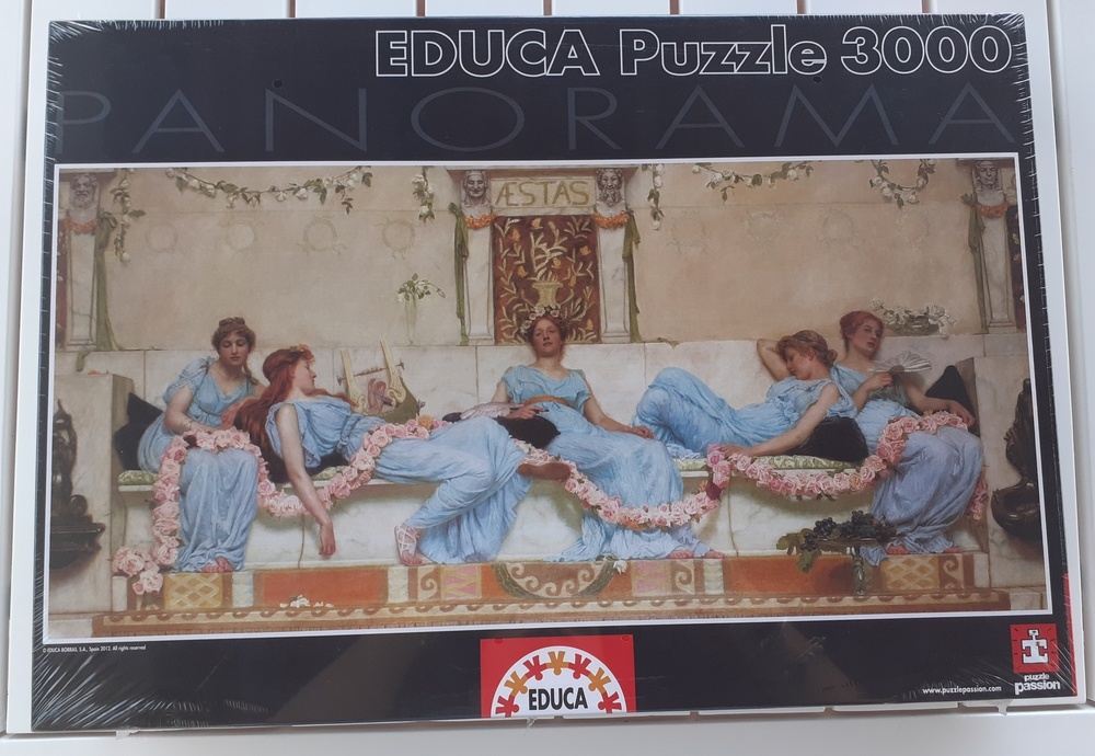 Educa manufactured this puzzle in 2012. The company had published an earlier version in 1996, in a white box. The title is Interlude, by William Reynolds-Stephens. Both editions are now very difficult to find.