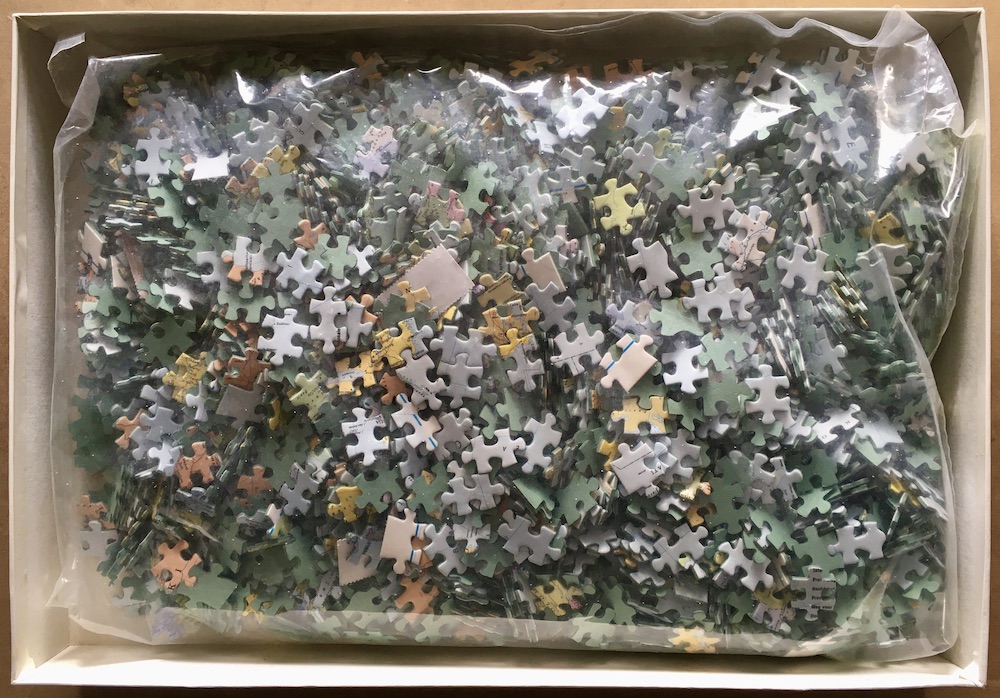 This puzzle is like NEW, with all the pieces SEALED inside the original plastic bag. The box is in very good condition, with some shelf wear.