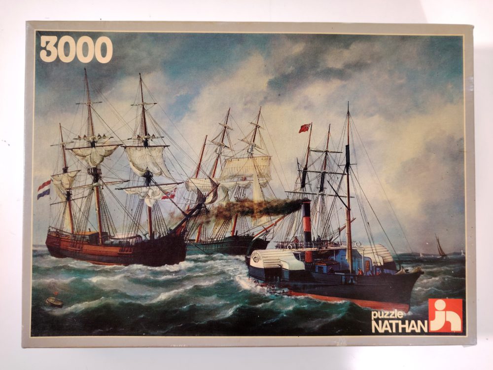 Nathan manufactured this very rare puzzle in 1983. The title is Ships Entering Le Havre, by the French maritime painter Édouard Adam. It is very difficult to find.