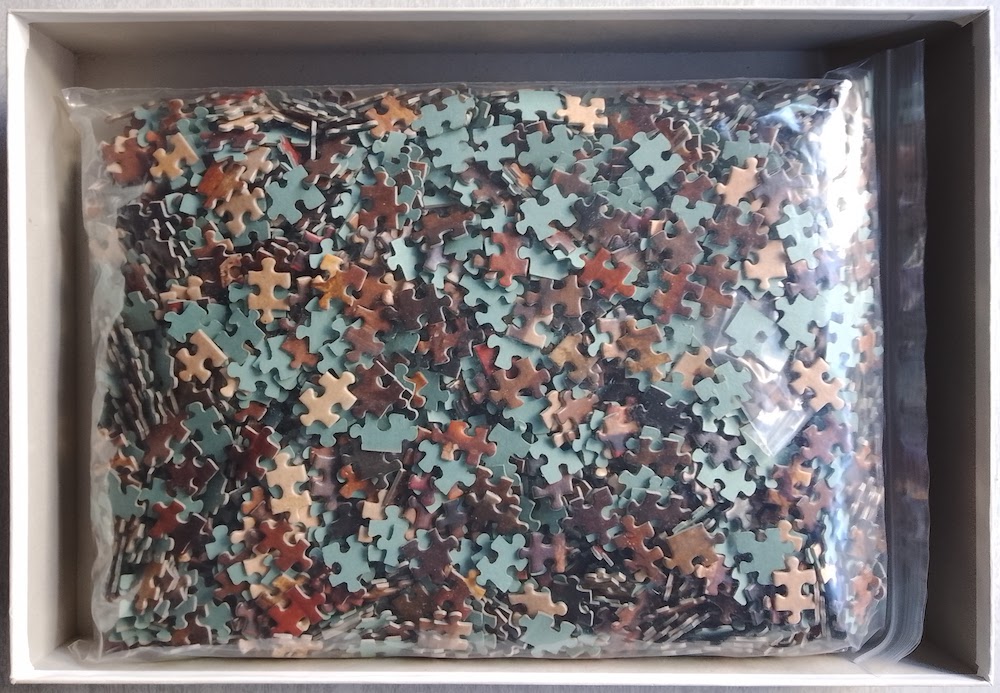 The puzzle is COMPLETE (2992 pieces). The pieces are in excellent condition. The box is in very good condition, with some shelf wear.