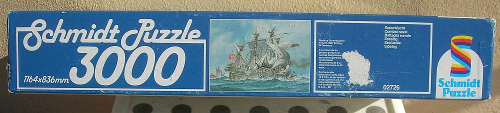 This is a puzzle that doesn’t appear very often and it is difficult to find. The title is Sea Battle, and the manufacturer is the German brand Schmidt. There is no reference on the box, but the artist is Günther Todt.