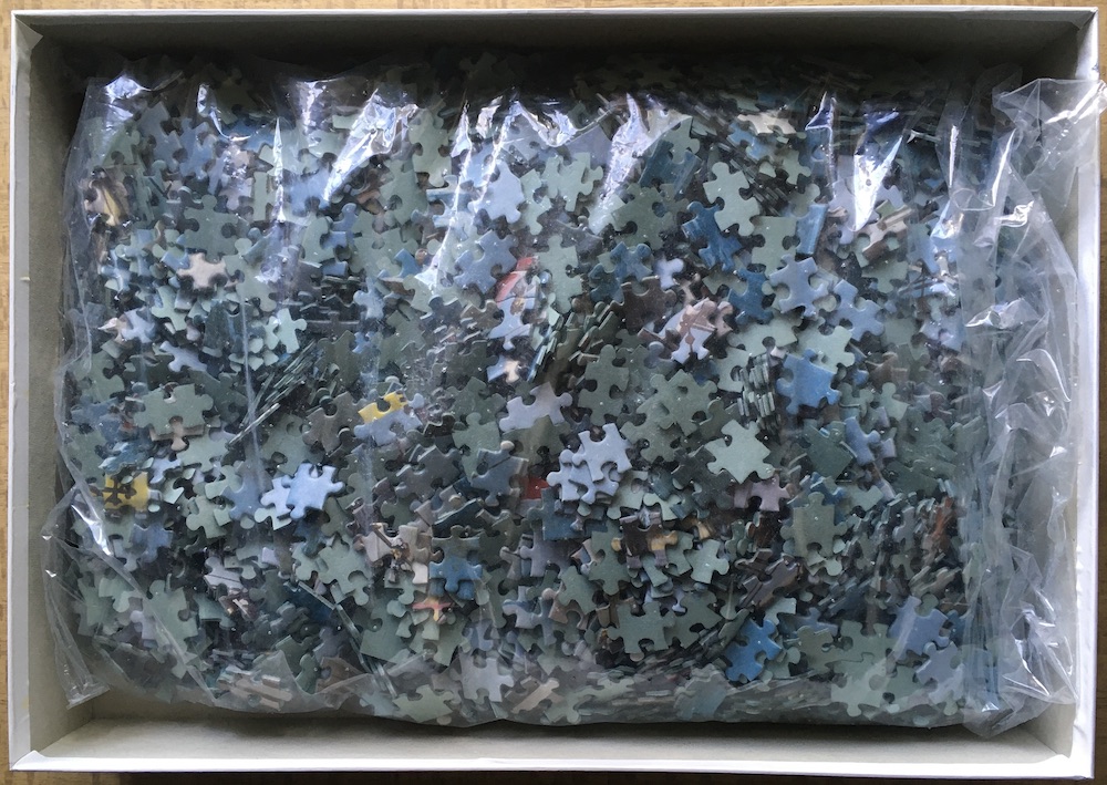 This is a puzzle that doesn’t appear very often and it is difficult to find. The title is Sea Battle, and the manufacturer is the German brand Schmidt. There is no reference on the box, but the original title is Bunte Kuh, by Günther Todt.