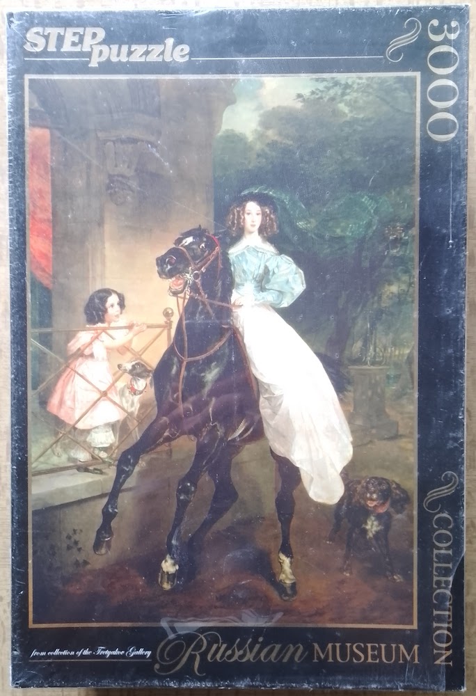 This is a very interesting puzzle by Step. The title is Lady on Horseback, by Karl Bryullov.