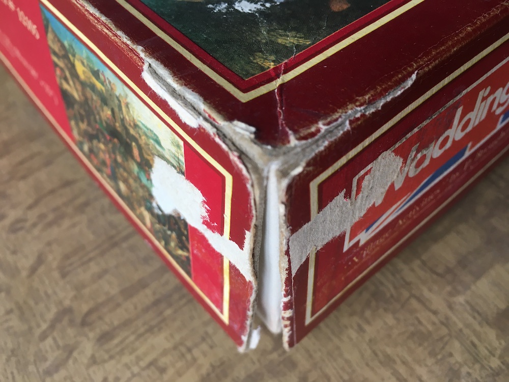 The puzzle is COMPLETE (3000 pieces). The pieces are in excellent condition. The box is in good condition, with some wear and scuffs, and a tear on a corner with tape tears, as you can see in the photographs.