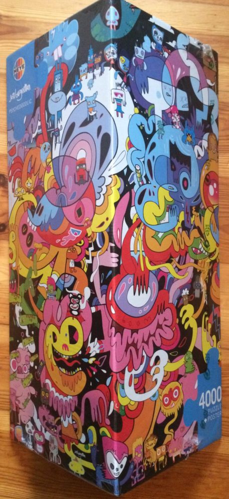 Heye published this colorful and interesting puzzle in 2013. The title is Psychedoolic, by Jon Burgerman. Today it becomes more and more difficult to find a copy in this condition.