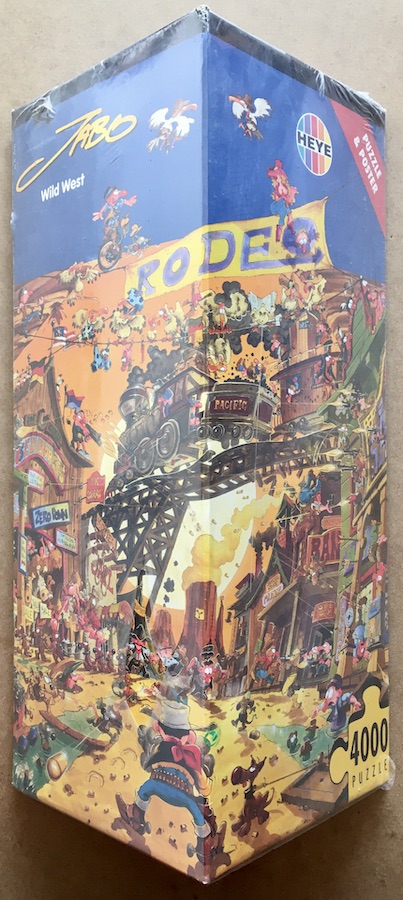 Heye manufactured this puzzle in 2002. The title is Wild West, by by German cartoonist Jan Birck, who signs as Jabo.