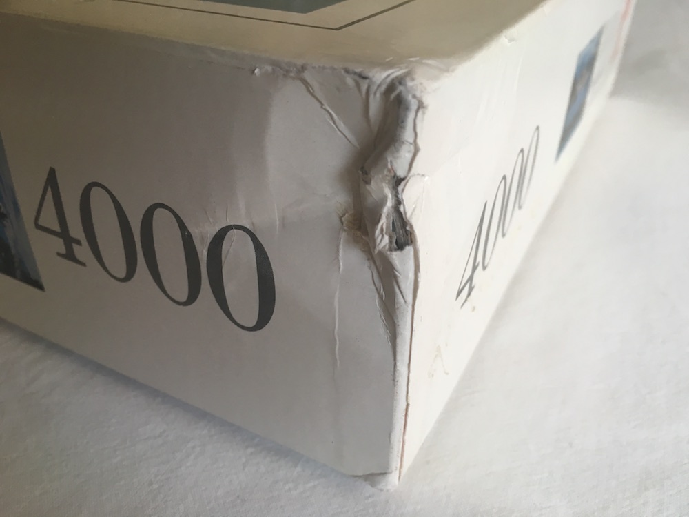 The puzzle is like NEW, with all the pieces SEALED inside the original plastic bag. The box is in very good condition, except for some shelf wear and a bump in one of the corners. There are also some tape remains in one of the sides.