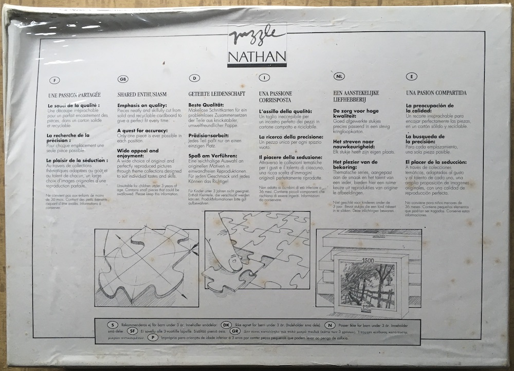 Nathan manufactured this puzzle in 1993, belonging to their Evasion collection. The title is Tahiti.