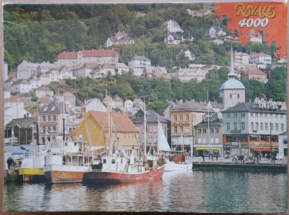 This is a very rare and old puzzle by Royale, although the real name of the publisher is Pentos Publishing and Bookselling Group Limited, which was a British company not in business anymore. The title of the puzzle is The Harbor, Bergen, Norway.