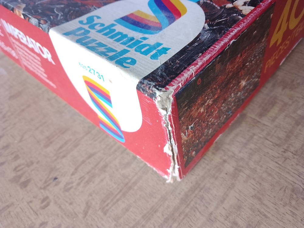 This puzzle is like NEW, with all the pieces SEALED inside the original plastic bag. The box is in good condition, with some wear, a tear on a corner, and stains on the base, as you can see in the photographs.
