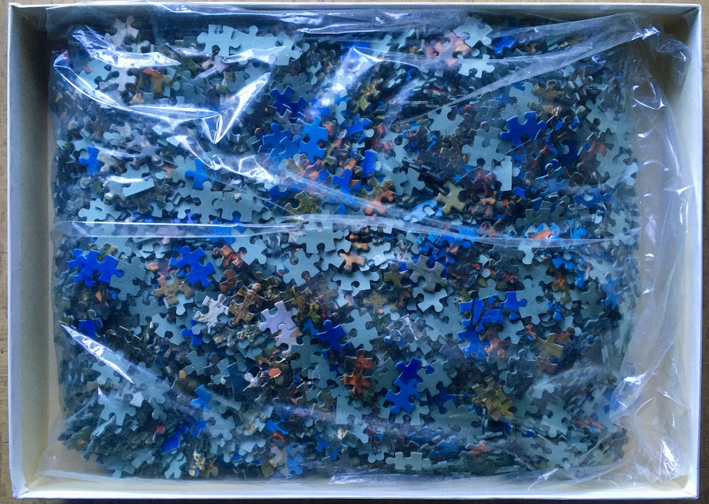 The puzzle is like NEW, with all the pieces SEALED inside the original plastic bag. The box is in good condition, with a tear on a corner, and some scratches and tape tears on the base.