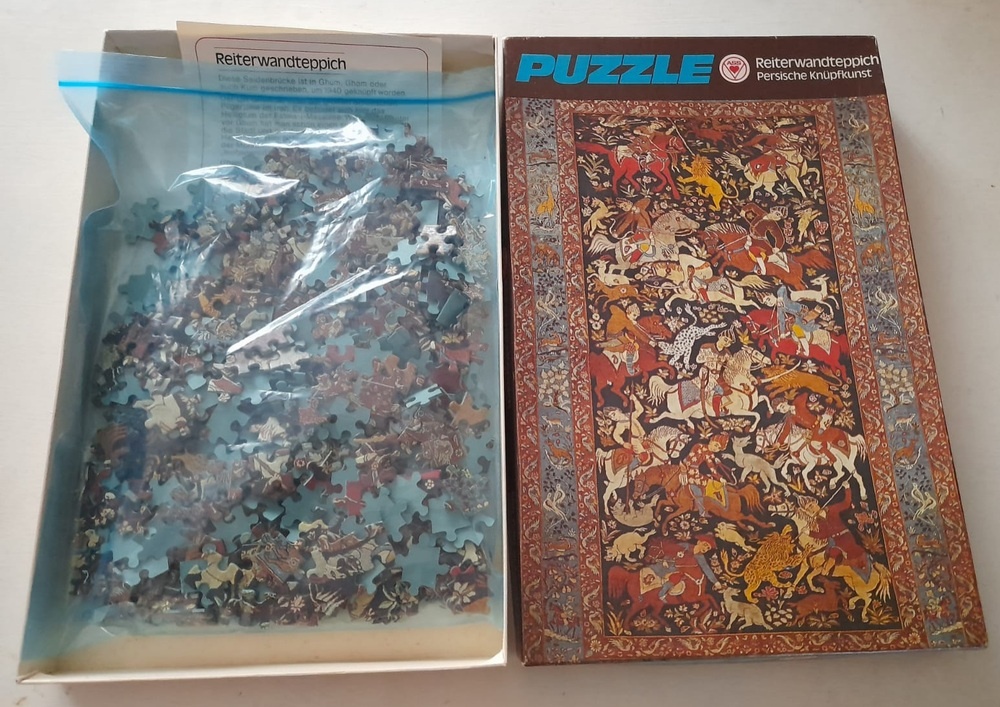 This is a very rare puzzle by German company ASS. The title in the box is Reiter Wandteppich, or Equestrian Tapestry. There is no reference to the author in the box.