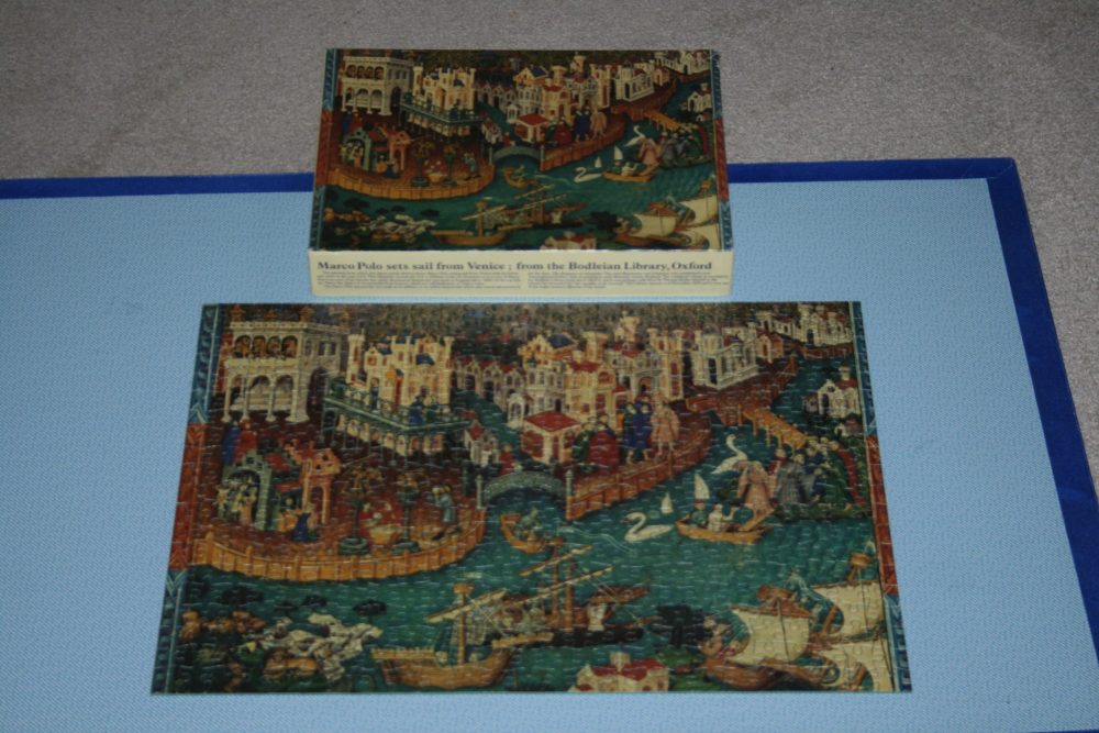This is an exceptionally rare puzzle under the brand Country House Treasures, although the real manufacturer was Ryco Originals. The title is Marco Polo sets sail from Venice.