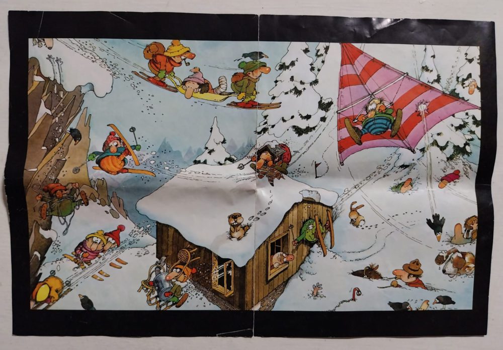 This is a rare puzzle that Heye manufactured in 1974. The title is Happy Skiing, by French cartoonist Jean-Jacques Loup. Like most old Heye puzzles, it is now very difficult to find.
