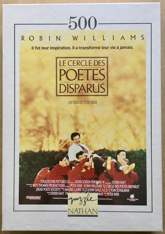 Nathan manufactured this puzzle in 1991, with a French poster of the movie Dead Poets Society.