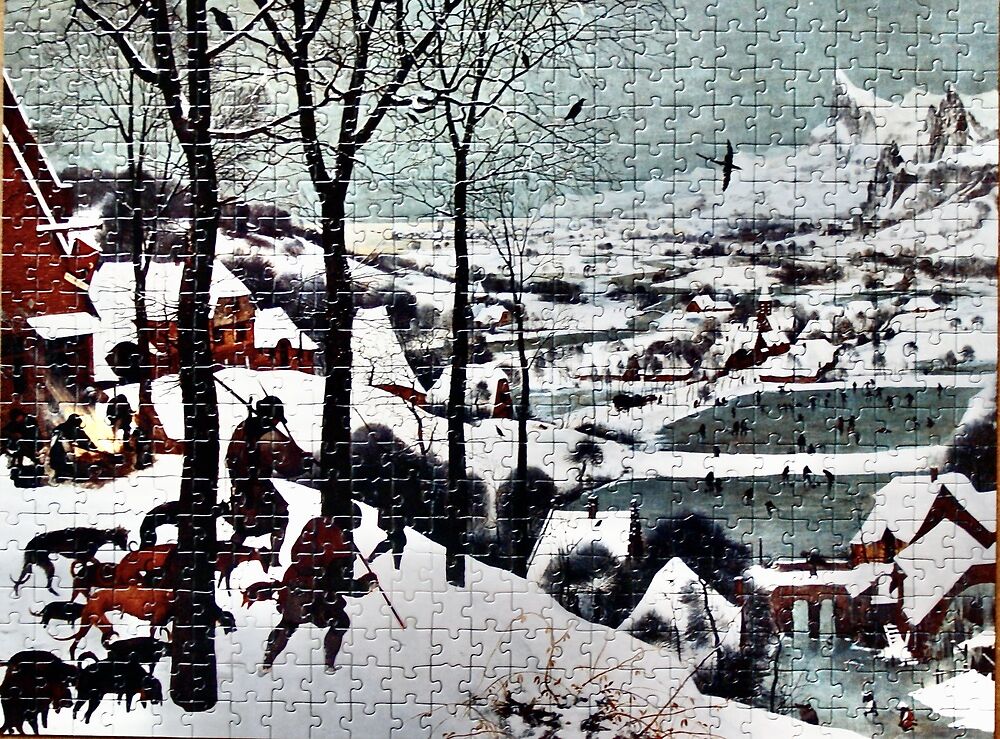 This is a beautiful small puzzle by Piatnik. The title is Hunters in the Snow, also known as The Return of the Hunters, by Pieter Bruegel the Elder. You can admire the original painting at the Kunsthistorisches Museum, in Vienna.