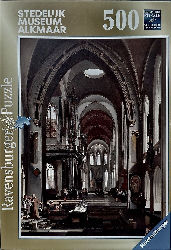 Ravensburger produced this special puzzle in 2021 for the Stedelijk Museum Alkmaar in Alkmaar, the Netherlands. The title is Church Interior, by the painter Emanuel de Witte who was born in Alkmaar. The original painting is part of the collection of the Stedelijk Museum. The puzzle is hard to find nowadays. despite its recent date of publication.