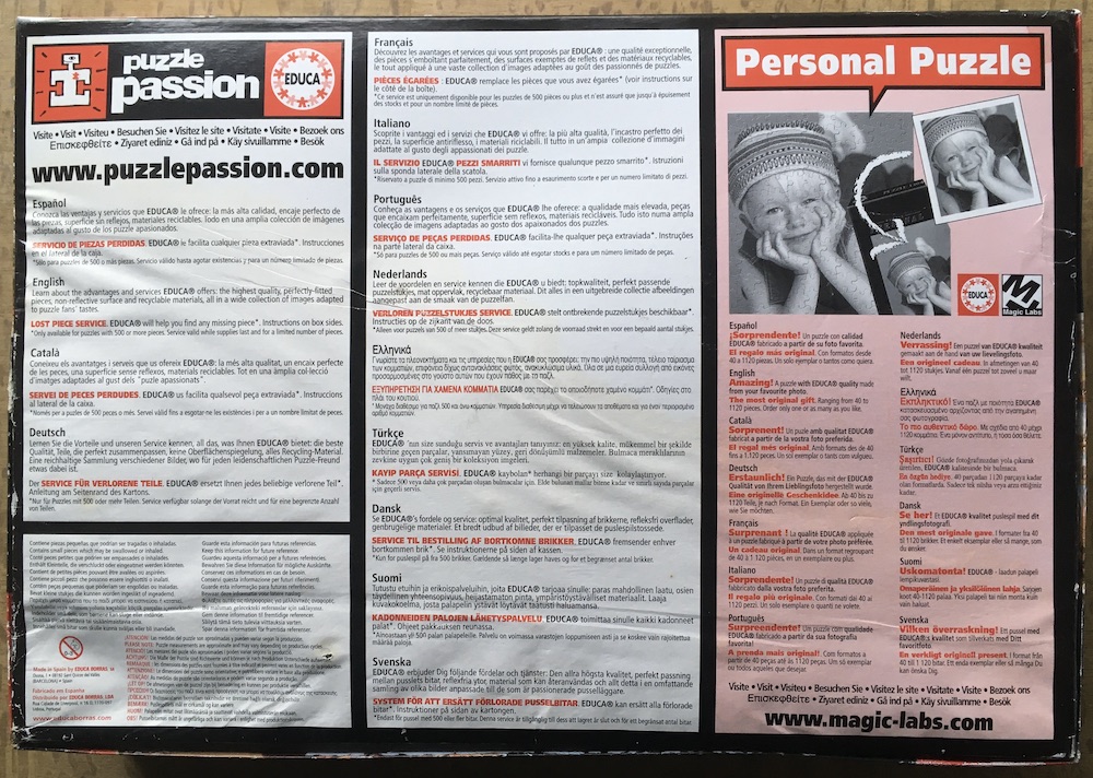 In 1990 Nathan published a 6000 piece version with the title Picture Gallery. Later, in 1999, Ravensburger published a similar 5000 piece version.