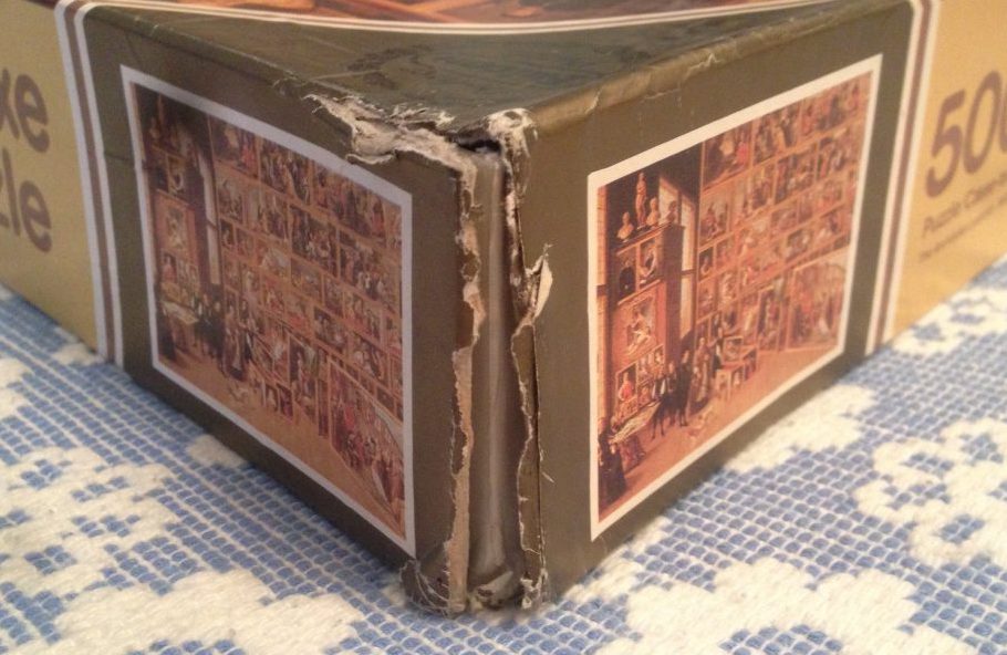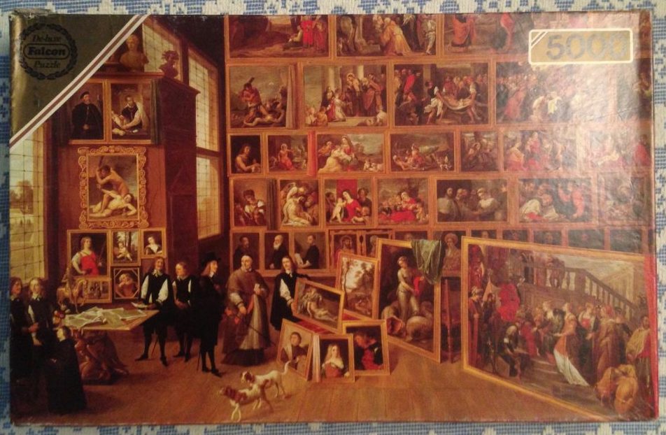 Most large fine arts puzzles by Falcon are extremely rare and doesn’t appear very often. The title of this one is The Archduke Leopold Wilhelm’s Studio, by David Teniers the Younger.