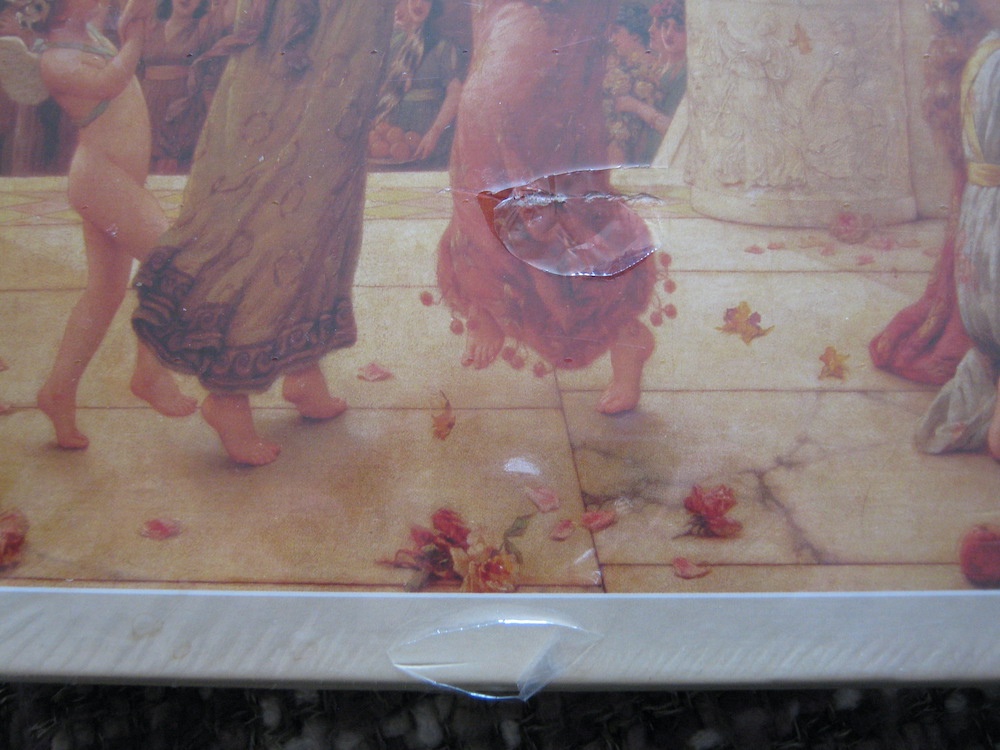 The puzzle is NEW, with its original FACTORY SEAL. There are some tears to the seal on the front and back. The box has some minor damage under one tear. There are some creases on corners and along the top and left side.
