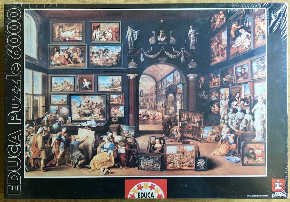 Educa produced this puzzle in 2012. It represents the painting Alexander the Great visiting the Studio of Apelles, by Willem van Haecht, although the title in the box is simply Art Studio.