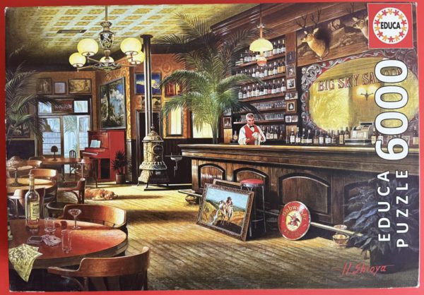 Educa manufactured this puzzle in 2015, and they produced a later version in 2016 with a different box design. The title is Big Sky Saloon, by Hiroaki Shioya.