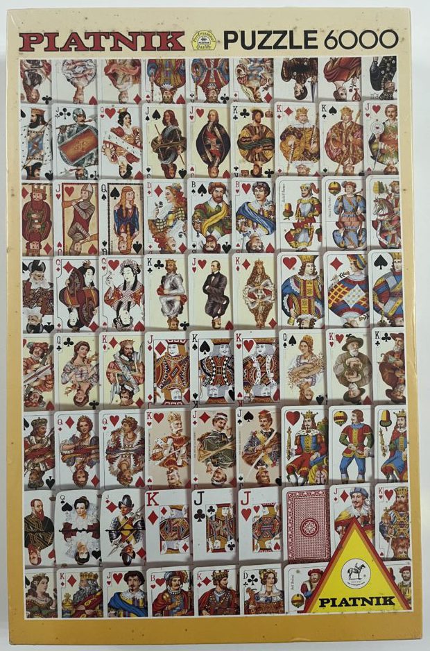This is a very nice large puzzle by Piatnik. The title is Playing Cards. The topic of this puzzle is very interesting, considering that Piatnik started in 1824 manufacturing cards precisely.