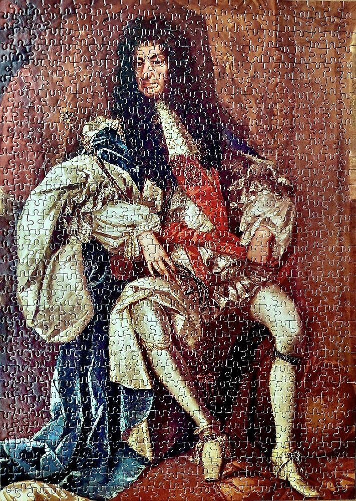 Falcon manufactured this very interesting puzzle for their Portrait series. The title is Charles II, portrayed by Thomas (or Edward) Hawker. King Charles II reigned England between 1660 and 1685. You can admire the original portrait in the National Portrait Gallery in London.