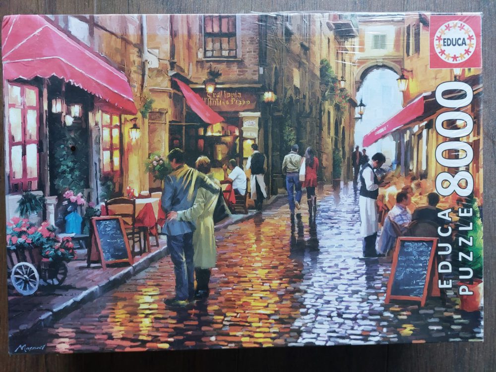 Educa manufactured this puzzle in 2016. The title is Cafe Street, by Richard Macneil.