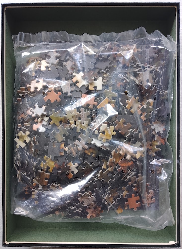 The puzzle is like NEW, with all the pieces SEALED inside the original plastic bag. The box is in very good condition, except for a minor dent on the base.