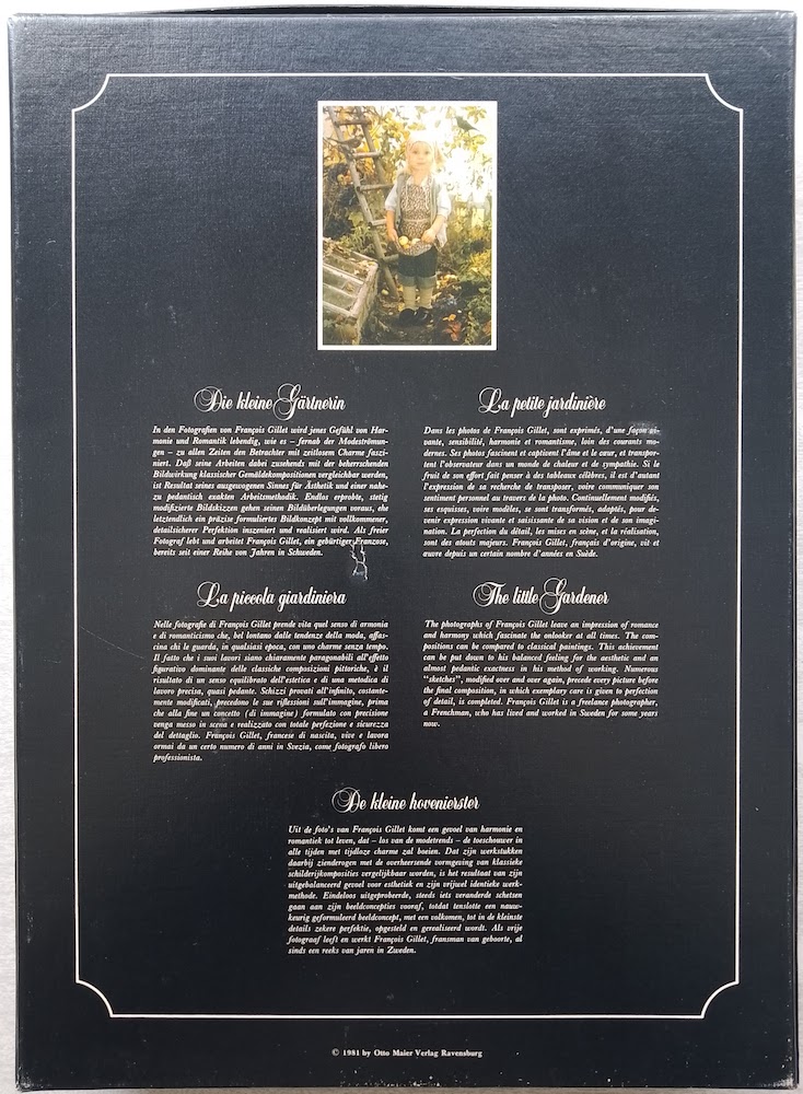 Ravensburger manufactured this very rare puzzle in 1981. The title is The Little Gardener, with a photograph by François Gillet.